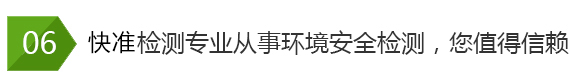 快準環(huán)境檢測公司技術力量雄厚,有一套完整的檢測服務流程,公司注重服務質量, 公司嚴把質量關向社會承諾:檢測公正、科學、高效、準確!空氣檢測、水質檢 測、土壤固廢檢測、輻射放射檢測、噪聲振動檢測、環(huán)保認證檢測、裝修材料 檢測就找山東快準環(huán)境檢測技術有限公司!